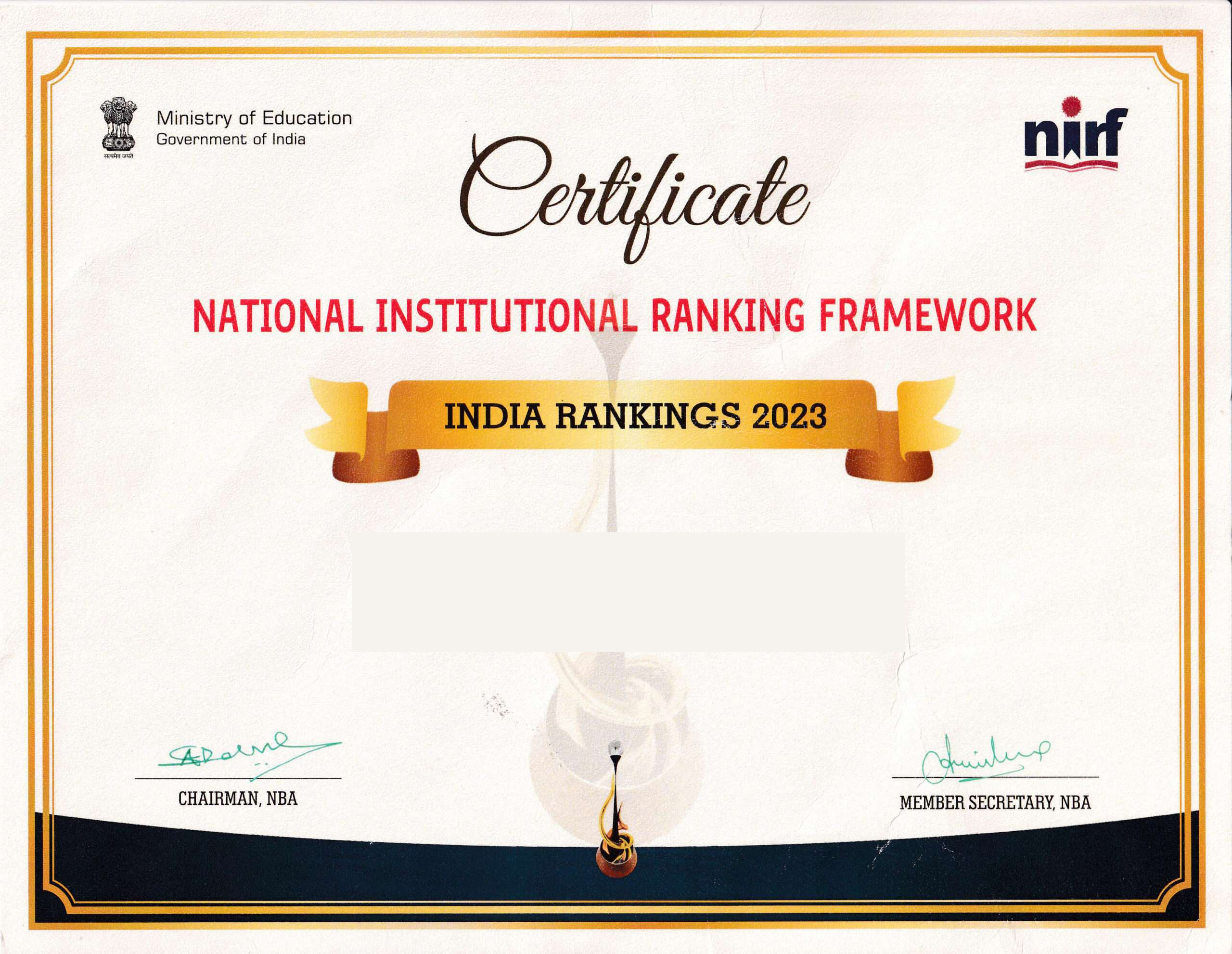 The National Institutional Ranking Framework (NIRF) was launched by Union Minister of Human Resource Development, Government of India on 29th September 2015. NIRF outlines a methodology to rank academic institutions across the country on a range of parameters drawn from the overall recommendations by a core committee set up by the ministry. The parameters are (a) Teaching, Learning and Resources (b) Research and Professional Practices (c) Graduation Outcomes (d) Outreach and Inclusivity and (e) Perception.